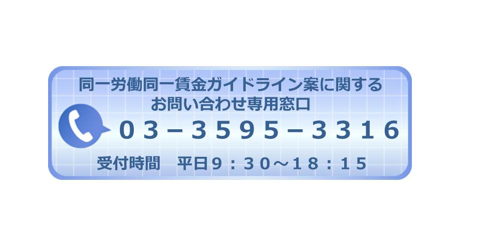 担当:同一労働同一賃金ガイドライン案に関するお問い合わせ専用窓口 03−3595−3316