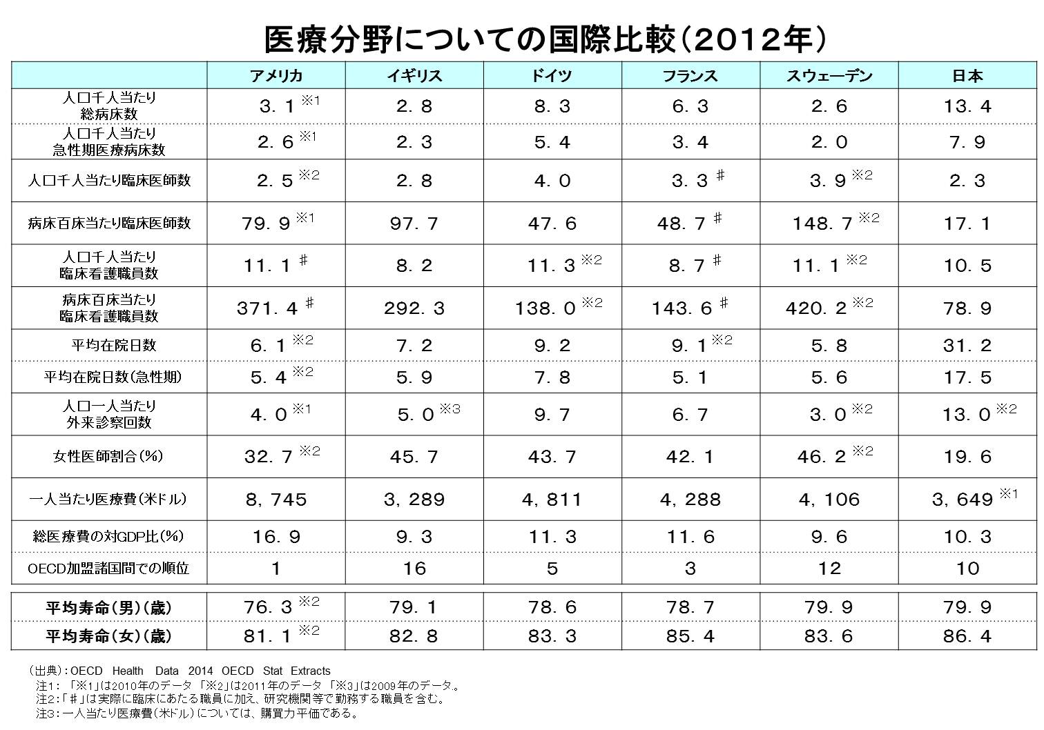 医療分野についての国際比較(2012年)