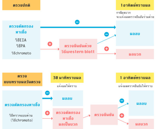 ภาพที่ 2 ขั้นตอนการตรวจหาเชื้อเอชไอวี(ตรวจปกติ, ตรวจแบบทราบผลวันตรวจ)