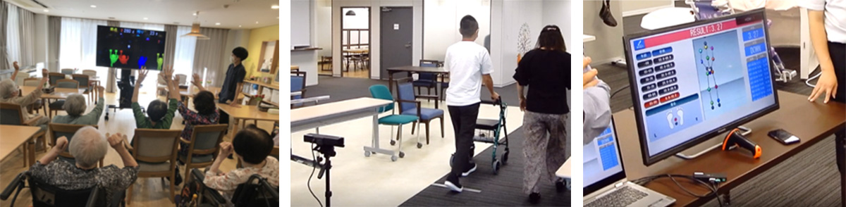 | 支援内容 | 実環境にてデモ機の設置を行い、実証施設の責任者(ホーム長・副ホーム長)、ケアリーダー、レクリエーション担当の介護職員、理学療法士のもと、実証を実施。 実際のレクリエーション場面で使用してもらい、精度安全性、介護士の負担軽減、被介護者の品質維持向上、生産性向上の4つの観点で評価を行った。 |