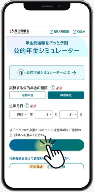 障害年金を受給している期間は、国民年金保険料が法定免除となり、その期間は老齢基礎年金の受給額が2分の1に減額されますが、この影響はシミュレーターの試算には自動的に反映されません。