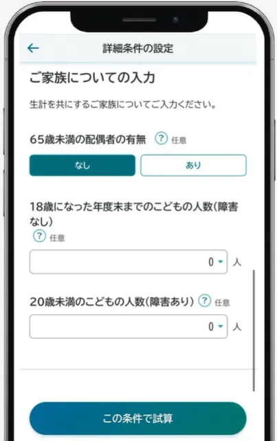 入力が終わりましたら、「この条件で試算」をタップしてください。