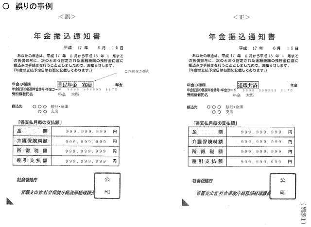 対象者の方には、お詫び状(別添2)と正しい内容の年金振込通知書を6月4日(土)に再発送する。