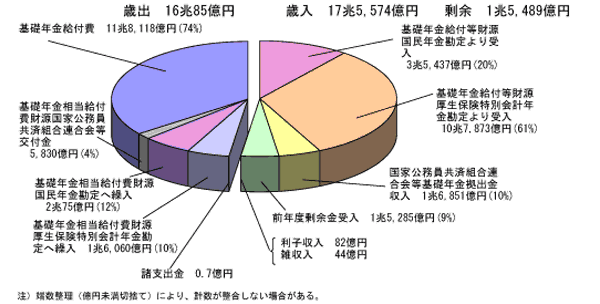 ・不足△1,706億円は、国民年金特別会計法第12条第2項の規定により国民年金積立金を取りくずした。 |