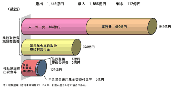・剰余112億円のうち、26億円(国庫財源分)を翌年度歳入に繰り入れ、86億円(国民年金保険料分)を国民年金積立金に組み入れた。 |