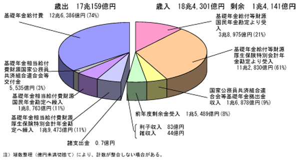 ・不足△1,070億円は、国民年金特別会計法第12条第2項の規定により国民年金積立金を取りくずした。 |