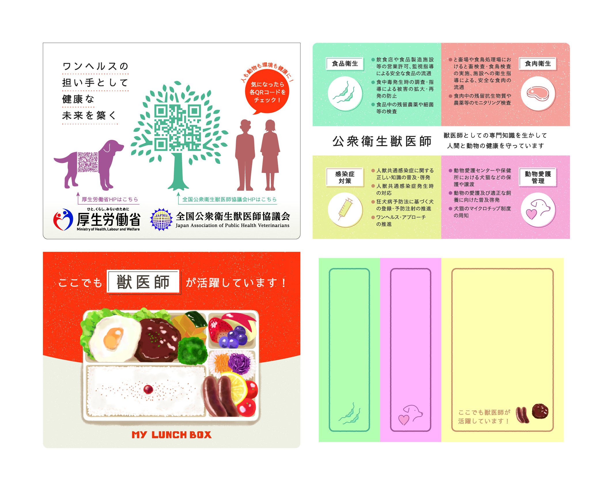 この業務内容を知ってもらうため、公衆衛生分野に係るイラストを盛り込んだクリアファイルを製作し、各獣医系大学へ配布しました。