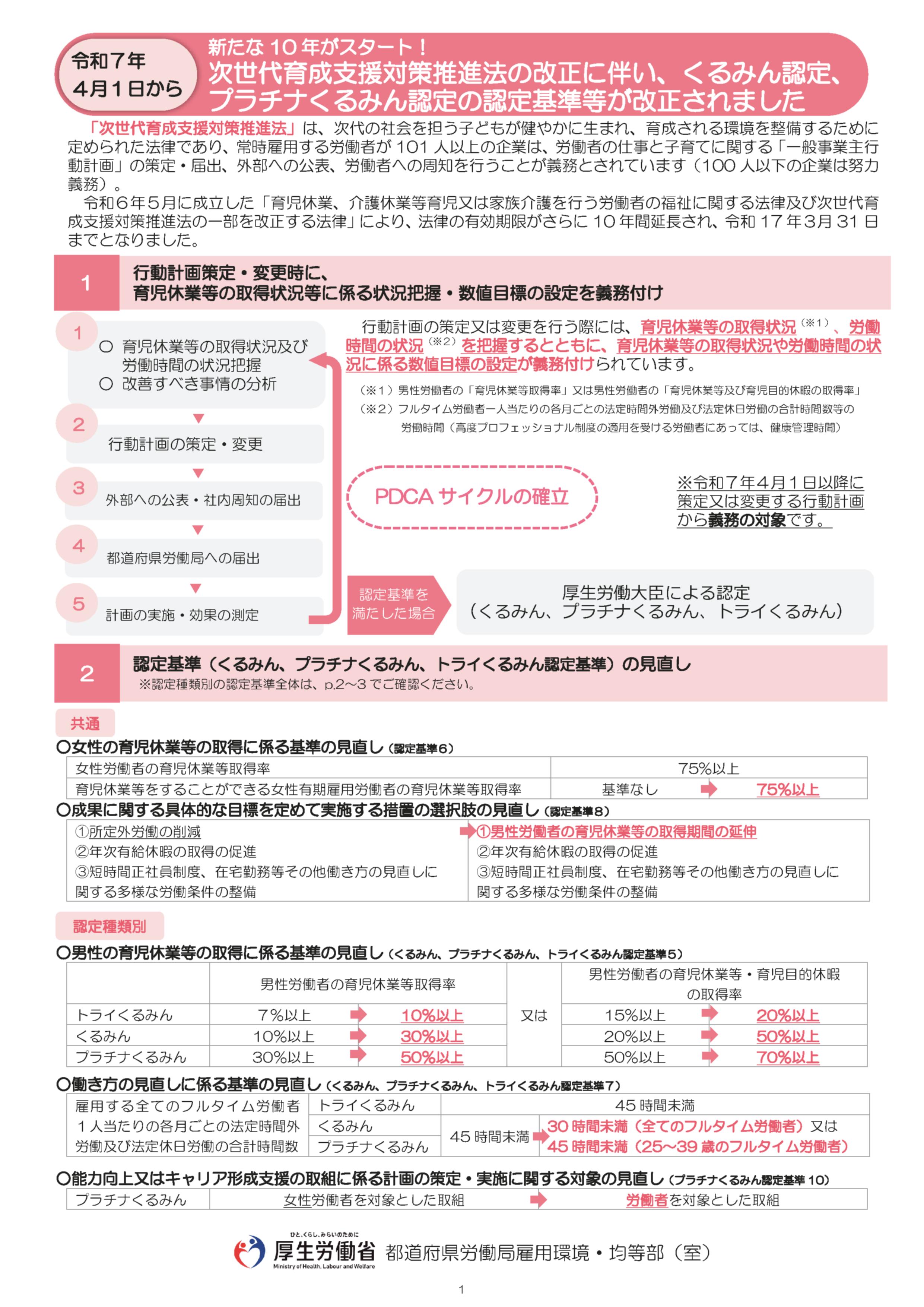 リーフレット「次世代育成支援対策推進法の改正に伴い、くるみん認定、プラチナくるみん認定の認定基準等が改正されます」New