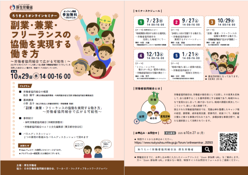 厚生労働省では、令和7年度も労働者協同組合に係るオンラインセミナーを開催いたします。