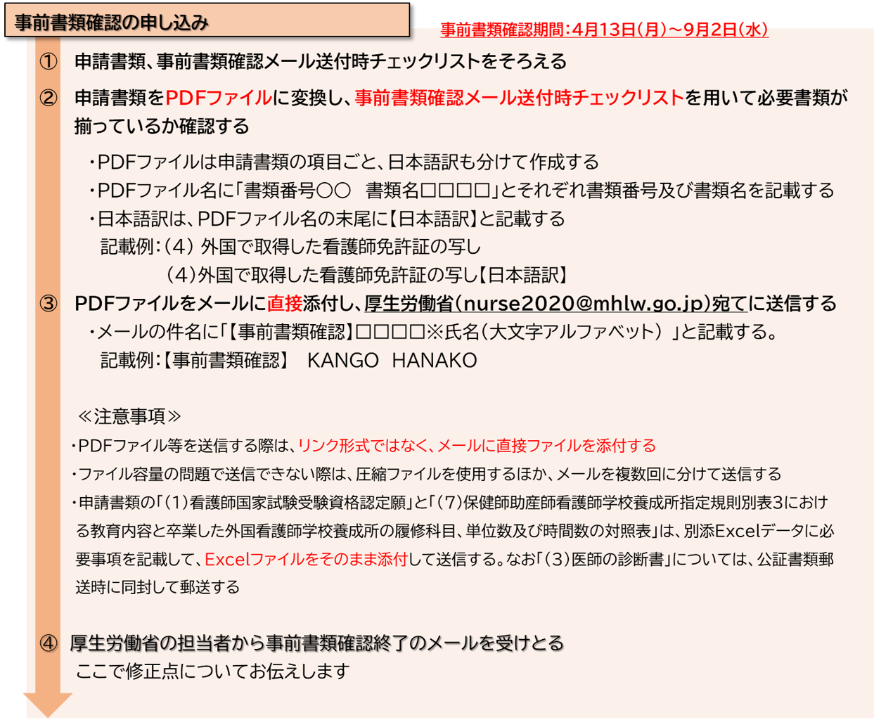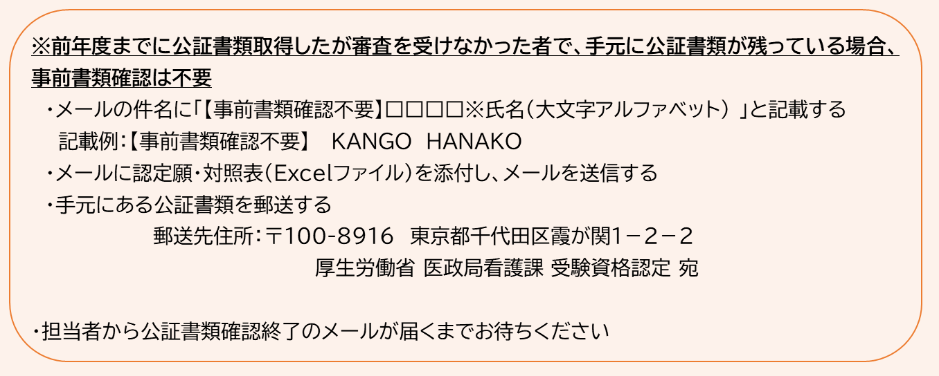 ※1通目のメールには、(1)看護師受験資格認定願・(7)対照表のExcelファイル