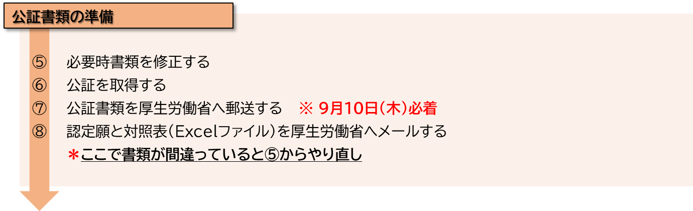 書類の準備ができたら公証をとって厚生労働省に郵送してください。