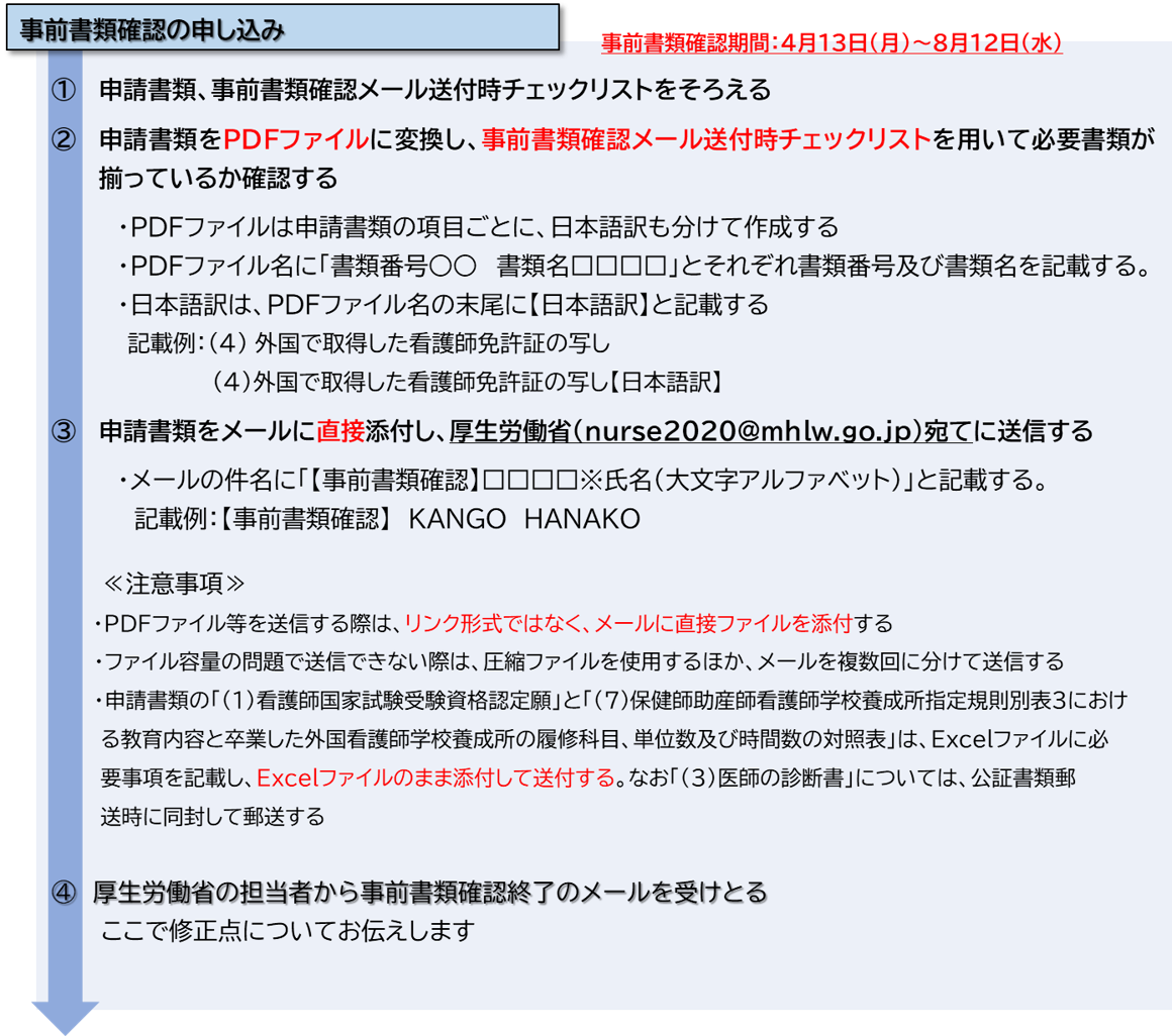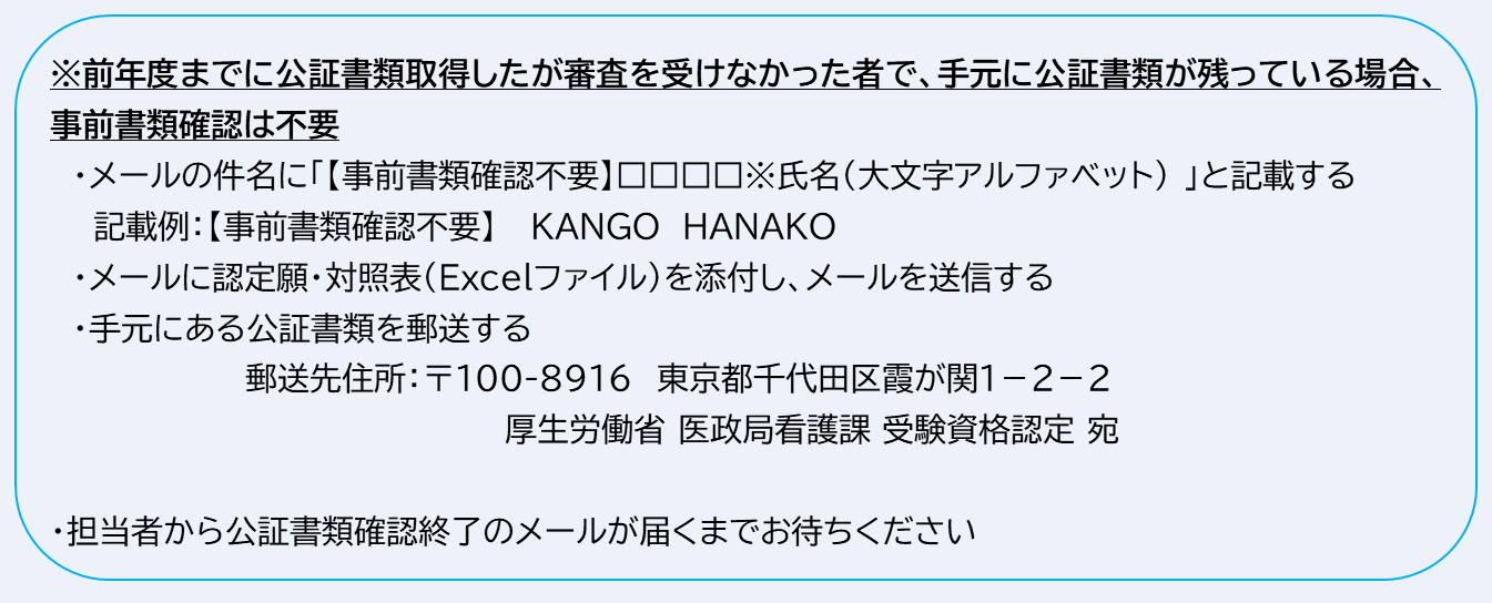※1通目のメールには、(1)看護師受験資格認定願・(7)対照表のExcelファイルと