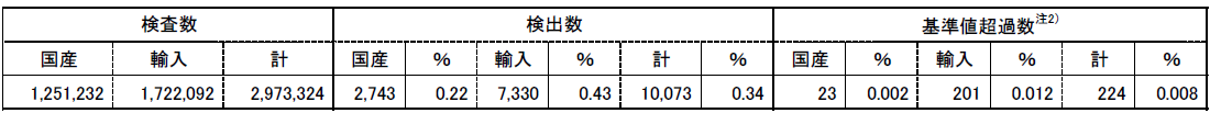 令和6年度に実施された食品中に残留する農薬、飼料添加物及び動物用医薬品(以下「農薬等」という。)の検査結果をとりまとめるため、地方公共団体及び検疫所注1)における検査結果を合わせて集計しました。