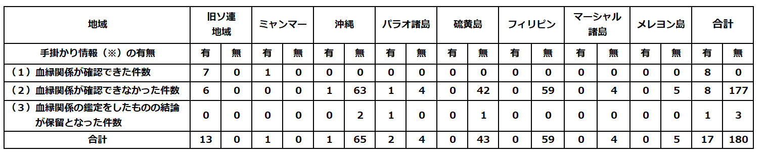(※)手掛かり情報とは、遺留品や埋葬地情報など、御遺骨の身元特定に繋がる情報のこと