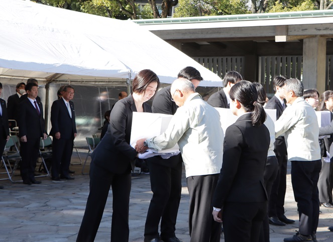 厚生労働省といたしましては、『戦没者の遺骨収集の推進に関する法律』に基づき、国の責務として、1柱でも多くのご遺骨が、一日も早くふるさとにご帰還いただけるよう、外務省及び防衛省などの関係省庁や、日本戦没者遺骨収集推進協会の皆さまとともに、一層、力を尽くしてまいります」と挨拶しました。