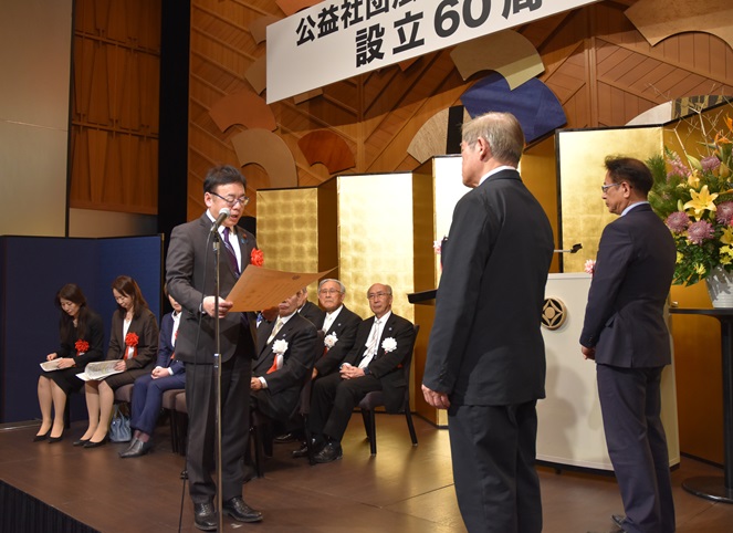 我が国における現在の状況は、皆さまの日頃からの並々ならぬ努力の賜物であり、永年にわたり建築物環境衛生の向上発展に尽力し、技能検定制度の発展に多大な貢献をされたことに、心から敬意と謝意を表します」と述べました。