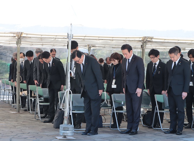 長坂厚生労働副大臣と栗原厚生労働大臣政務官は、厚生労働省が主催する硫黄島及びマリアナ諸島戦没者遺骨引渡式と遺骨収集団の解団式に出席しました。