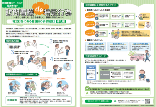 また、ポータルサイトには、医師や訪問看護ステーションの管理者に向けた、特定行為研修制度に関する説明用のリーフレットも掲載されています。
