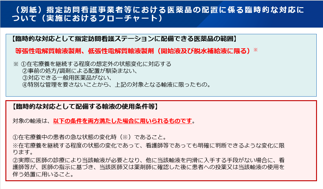 「指定訪問看護事業者等における医薬品の配置に係る臨時的な対応について」対応フロー