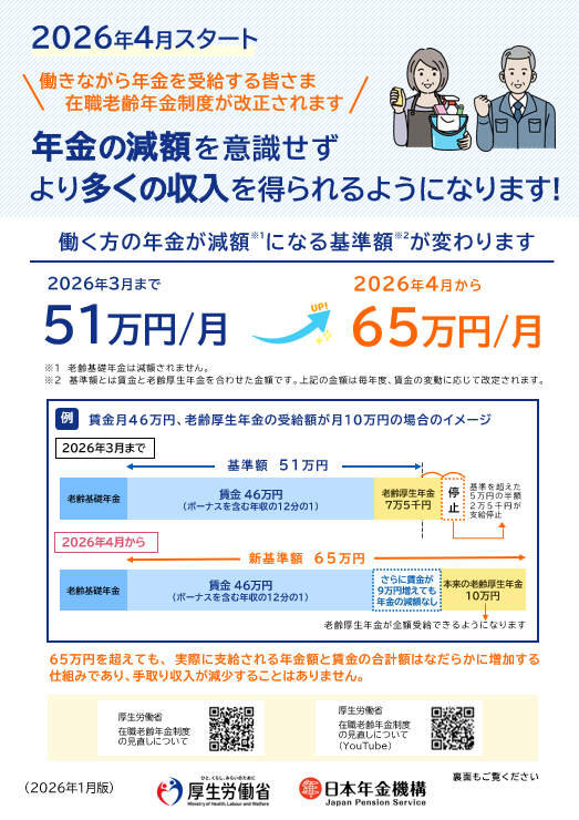 なお、改正後の支給停止基準額(62万円)は、法律成立時(2025年6月)の額です。 2026年4月からは65万円になります。