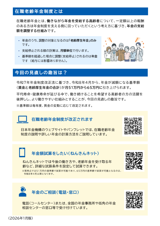 本ページでは、在職老齢年金制度の見直しの概要について説明します。