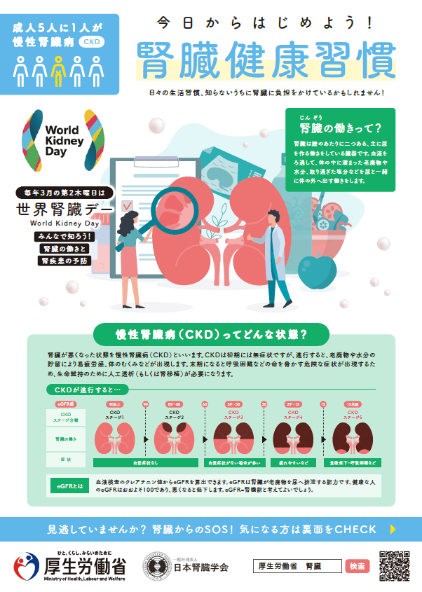 - 令和7年度世界腎臓デー(World Kidney Day)に係る厚生労働省における取組の周知について[127KB](令和8年2月18日付け厚生労働省健康・生活衛生局がん・疾病対策課事務連絡)