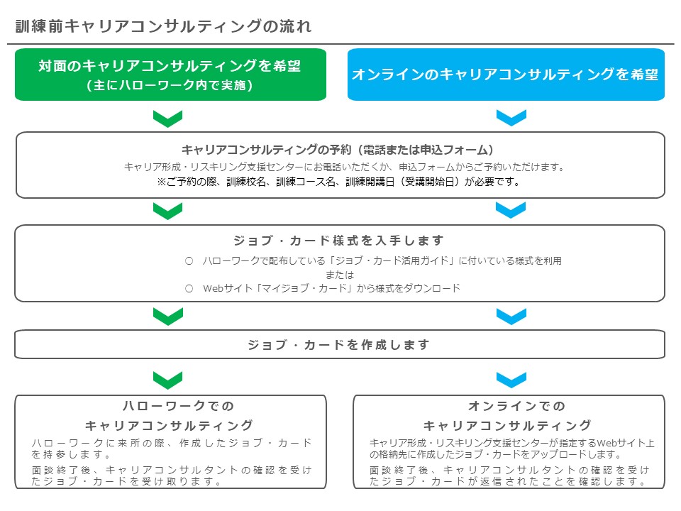 訓練前キャリアコンサルティング|ジョブ・カード作成支援の流れ・予約について | キャリア形成・リスキリング推進事業(厚生労働省委託事業