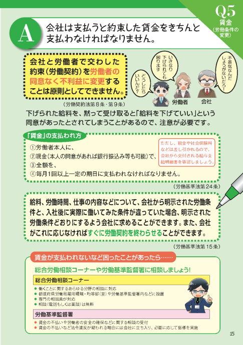 - 【Q5解説】 会社は支払うと約束した賃金をきちんと支払わなければなりません。