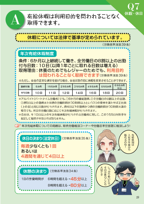- 【Q7解説】 有給休暇は利用目的を問われることなく取得できます。