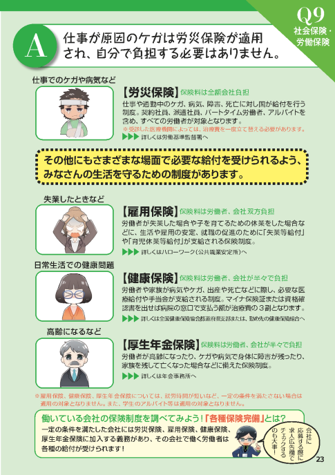 - 【Q9解説】 仕事が原因のケガは労災保険が適用され、自分で負担する必要はありません。