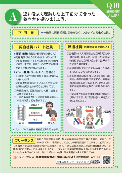 - 【Q10解説】 違いをよく理解した上で自分に合った働き方を選びましょう。