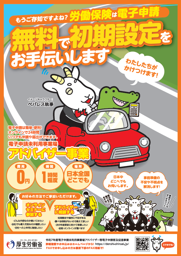 労働保険の電子申請に関する特設サイトやパンフレットなどに登場しています。