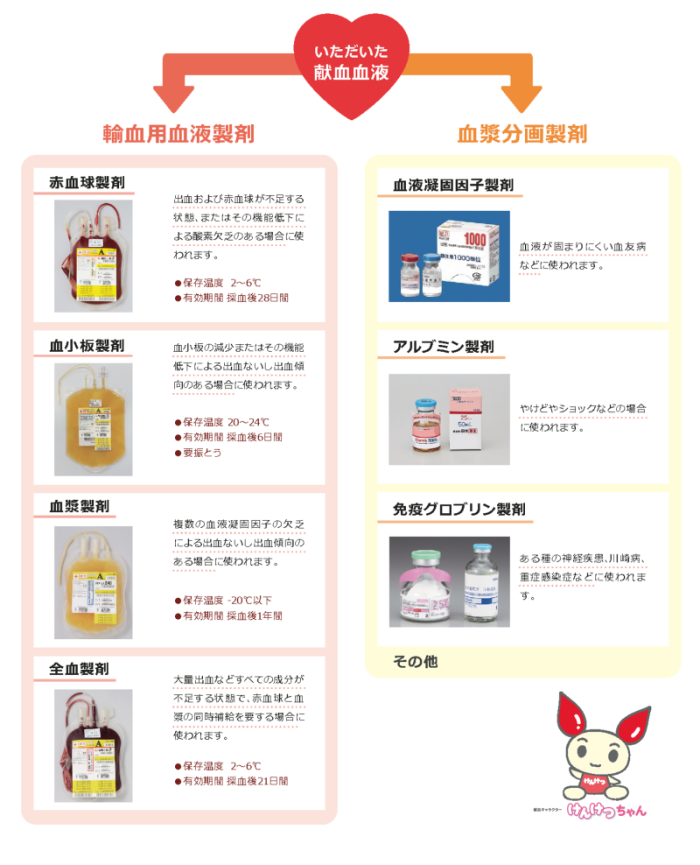献血で集めた血液はどのような場面で利用されるのでしょうか。