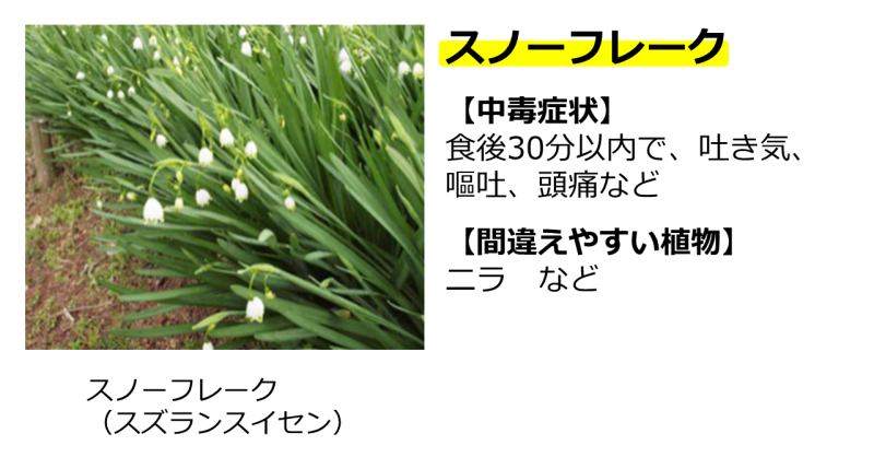 スイセンとスノーフレーク(スズランスイセン)も誤食を起こしやすい植物の代表です。