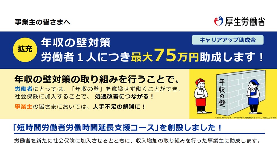 年収の壁対策として、労働者1人につき最大75万円を助成します!